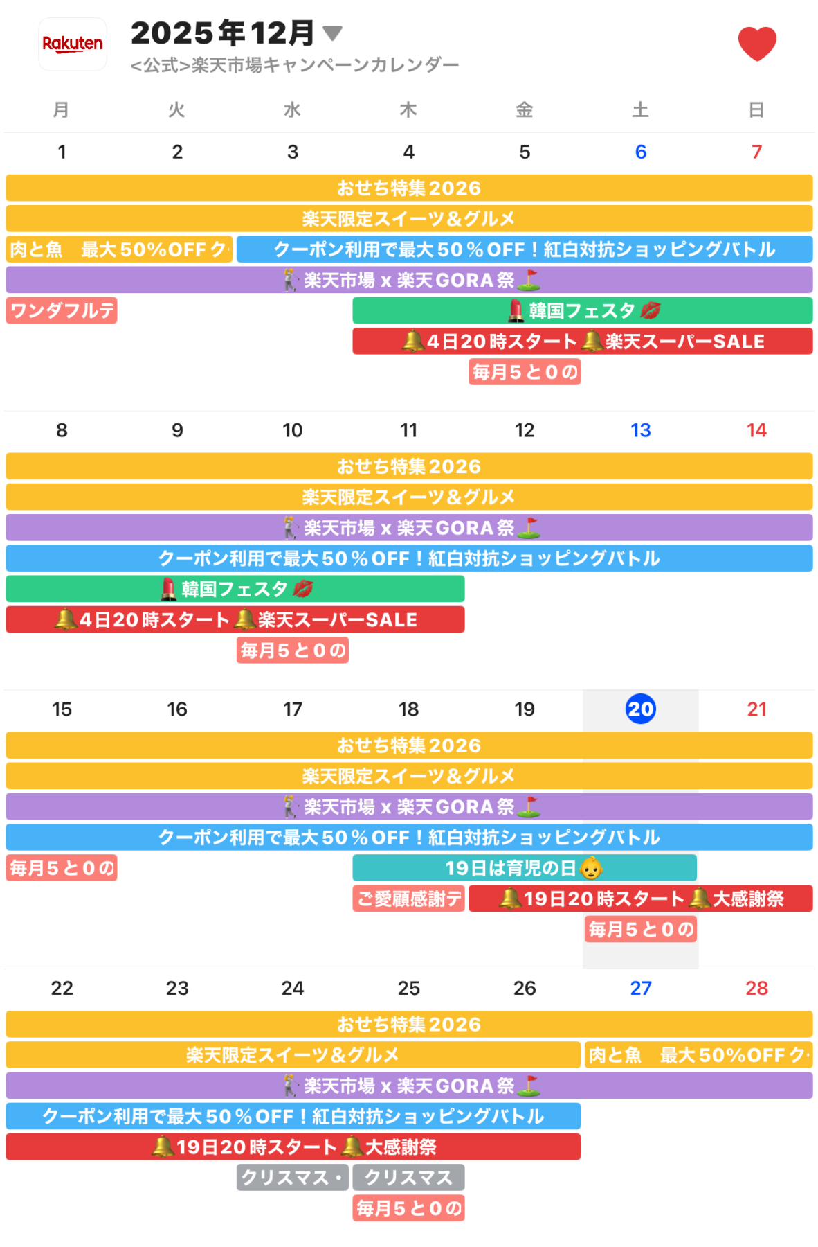 楽天の特集・セール情報がスケジュールで出るの!